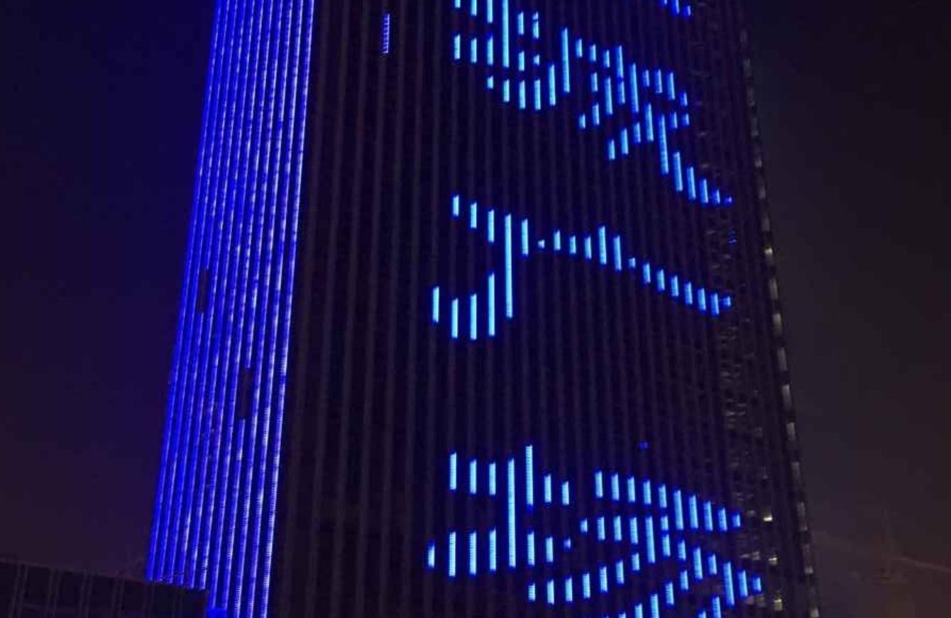 夜景突显建筑天际,同时结合地域文化以雪莲花为主要立面造型 表现,主塔楼采用瀑布理念进行点缀,绘制优美的西域篇章。